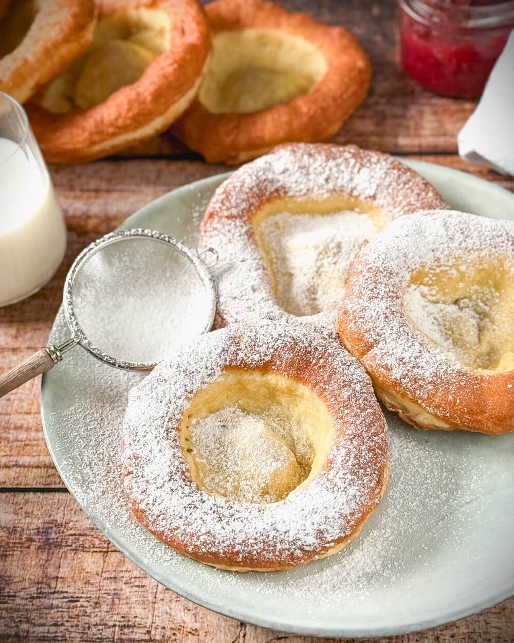 Mancherorts spricht man auch von Schmalznudeln oder einfach nur von Krapfen, wobei damit nicht die gefüllten Berliner gemeint sind. Trotz der vielen Namen bleibt das Prinzip immer gleich: ein luftiger Hefeteig, der knusprig ausgebacken und meist mit Puderzucker serviert wird.
