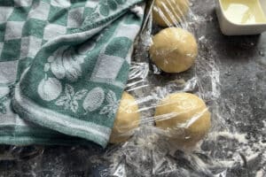 - Die Teiglinge leicht mit Speiseöl betupfen, mit Folie abdecken und nochmals 30 Minuten gehen lassen.