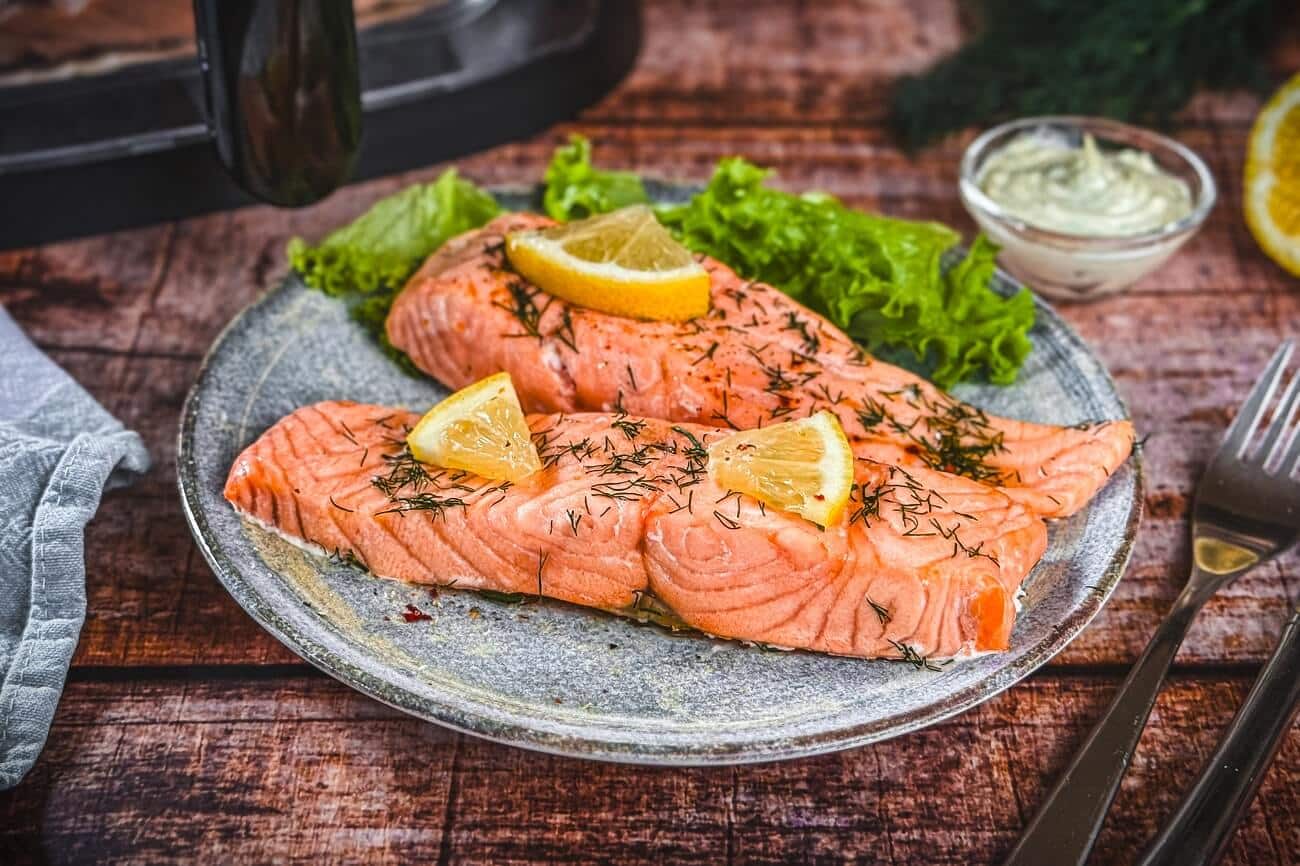 Lachs im Airfryer soll saftig und zart auf dem Teller landen. Klappt mit meinem Rezept perfekt. Mit schneller und feiner Marinade.