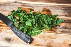 - Frischer Bärlauch bringt das typische würzige Aroma in den Teig.