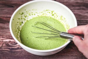 - Eier, Mehl und Salz in eine Schüssel geben, die Bärlauchmilch dazu gießen und alles zu einem glatten Teig verrühren.