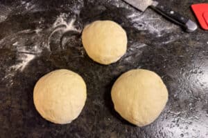 • Den Teig in 3 oder 4 gleich große Stücke teilen und diese zu glatten Kugeln wirken.