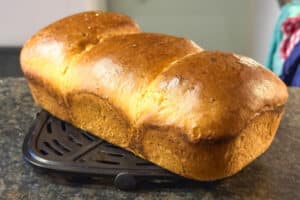 Nach der Backzeit kühlt die Brioche zunächst etwas ab und löst sich anschließend vorsichtig aus der Form, bevor sie vollständig auskühlt. Vom Vorgang alles sehr ähnlichen dem Osterbrot oder einem klassischen Hefezopf.