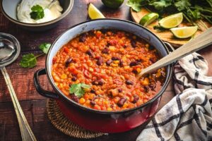 Die Chili sin Carne Zubereitung läuft in einem Topf ab und verlangt keine besonderen Handgriffe.