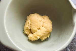 - Teig vom Herd nehmen, in eine Schüssel geben und etwa 3 Minuten abkühlen lassen.