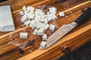 • Feta: Würziger Käse bringt eine kräftige und leicht salzige Note in den Couscous Salat. Kleine Würfel verteilen sich zwischen Couscous und Gemüse und sorgen für einen schönen Kontrast.