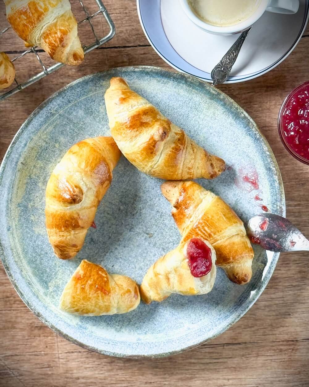 Leckere Croissants dazu Himbeer oder Erdbeermarmelade. Einfach das BESTE 🙂