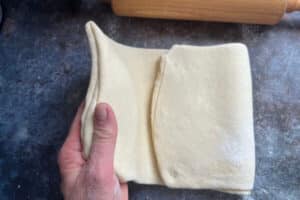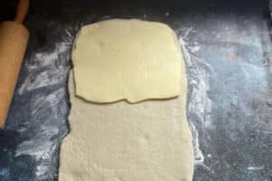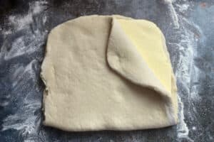 - Den Teig darüberklappen, sodass die Butter vollständig eingeschlossen ist.
