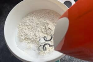 - Mehl, Zucker und Salz in einer Schüssel vermischen.