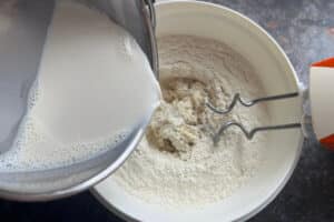 - Die Hefemilch zugeben und etwas unterrühren.