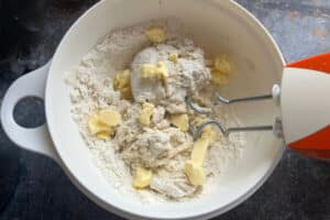 - Die Butterflocken zugeben und alles zu einem glatten Teig verkneten.