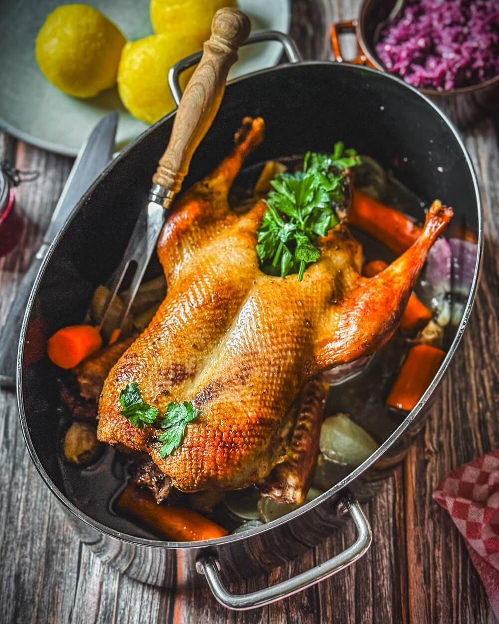 Heute möchte ich ein sehr altes, uriges und ursprüngliches Rezept präsentieren. Es stammt von meiner Oma und liegt mir ganz besonders am Herzen. Und ich freue mich sehr, es euch heute vorstellen zu dürfen. Die Ente im Bräter braten gelingt ganz einfach.
