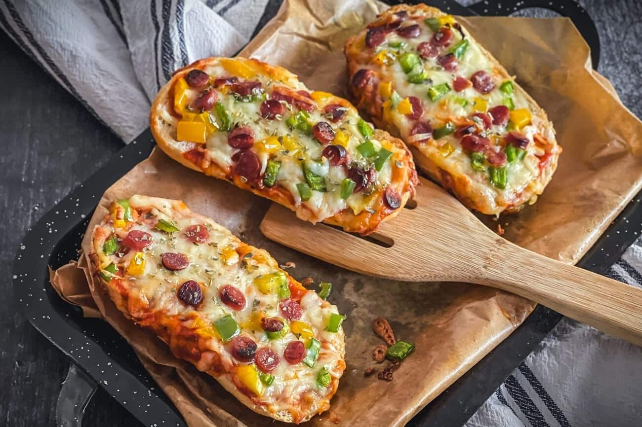 Das Pizza Baguette Rezept ist auch bekannt als Bistro Baguette. Klappt schnell und einfach – als Snack, Abendessen oder Party Fingerfood.