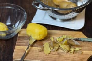 - Die Kartoffeln anschließend pellen und etwas ausdampfen lassen.