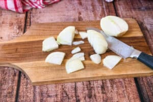 - Die Zwiebel schälen und fein hacken oder in Halbringe schneiden.