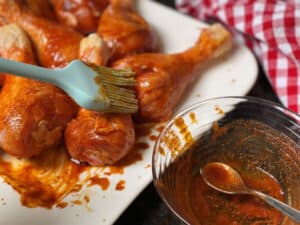 - Unterkeulen rundum mit der Gewürzmischung einpinseln, damit sie gleichmäßig würzen und bräunen.