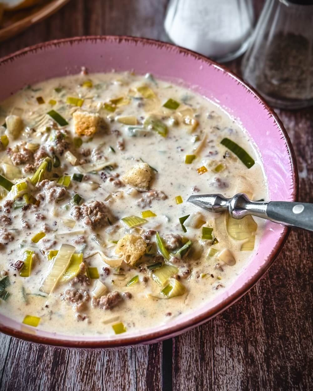 Die Käse Lauch Suppe mit Hackfleisch steht für eine ehrliche, herzhafte Küche mit wenigen Zutaten und einem klaren Ergebnis. In meiner Küche kommt sie regelmäßig auf den Tisch, weil sie unkompliziert umzusetzen ist und geschmacklich genau in diese cremig-deftige Richtung geht, die viele an diesem Klassiker schätzen.