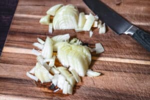 - Die Zwiebel fein würfeln.