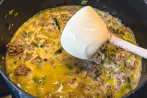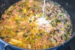 3. Flüssigkeit und Cremigkeit in die Käse Lauch Suppe einarbeiten