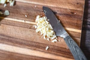 - Die Knoblauchzehen fein hacken.