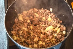 - Zwiebel liefert die aromatische Grundlage und begleitet das Hackfleisch schon zu Beginn im Topf.