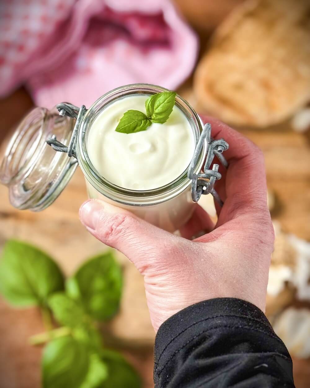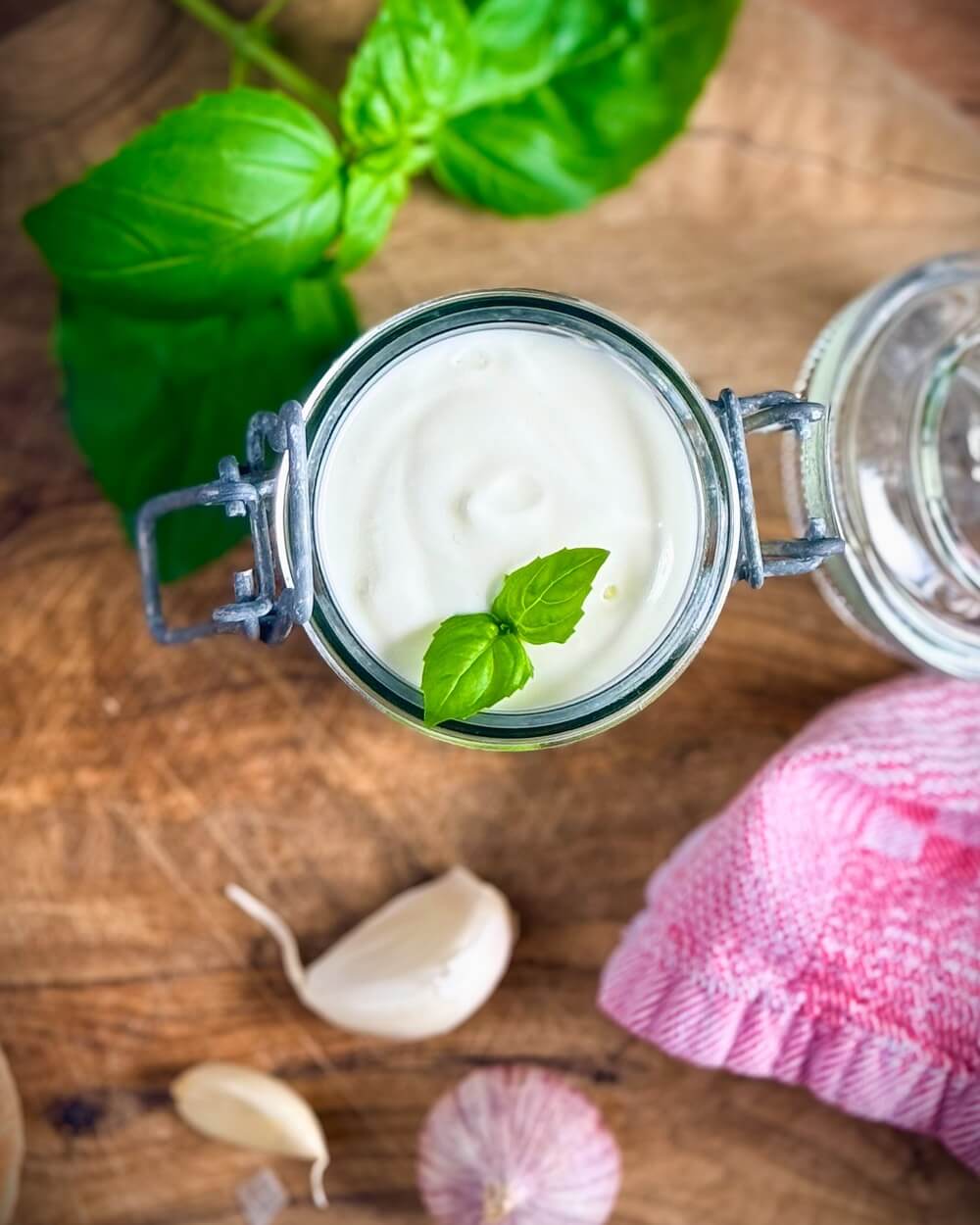 Knoblauch entwickelt mit der Zeit ein kräftigeres Aroma. Deshalb wirkt der Dip nach längerer Lagerung oft intensiver und etwas schärfer als direkt nach der Zubereitung.