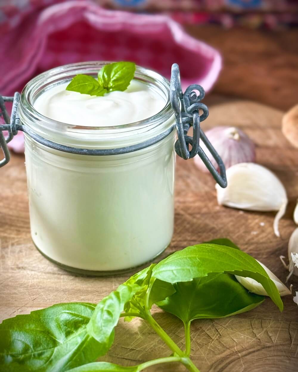 In diesem Abschnitt führe ich die wichtigsten Zutaten des Rezepts auf. Und erläutere kurz, welche Rolle sie im Knoblauch Dip Rezept spielen. Die genauen Mengenangaben findest du in der Rezeptkarte unterhalb.