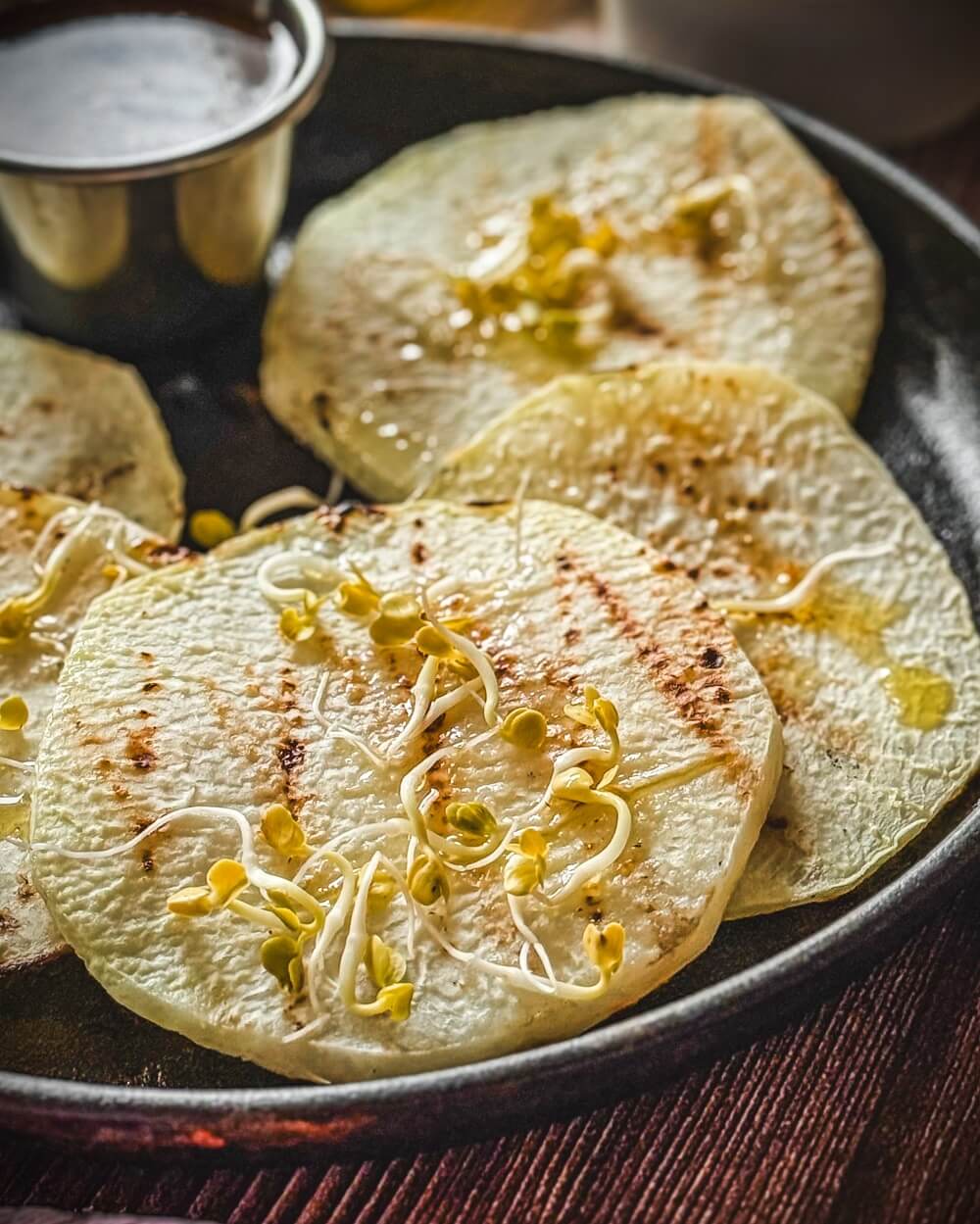 - Sprossen (optionale Zutat) setzen beim Servieren einen frischen Akzent und bringen zusätzlich etwas Biss ins Gericht. Dadurch entsteht ein angenehmer Kontrast zu den weichen Kohlrabischeiben.