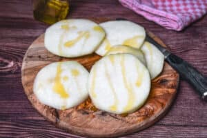 - Die Scheiben von beiden Seiten mit Olivenöl einreiben oder einpinseln.