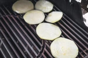 - Den Grill auf etwa 220 Grad indirekte Hitze vorbereiten und die Kohlrabischeiben darin rund 20 Minuten grillen, bis sie weich sind.