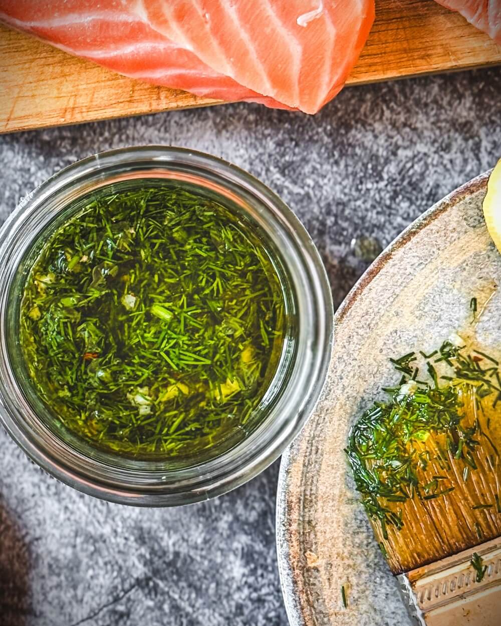 - Frischer Dill: Bringt ein typisch frisches Kräuteraroma, das klassisch zu Lachs passt. Gehackt lässt er sich gut unterrühren und verteilt sich gleichmäßig in der Marinade.