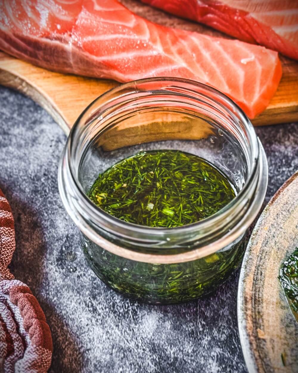 Zum Schluss den gehackten Dill unterrühren, damit sein frisches Aroma erhalten bleibt. Danach kann die Marinade direkt verwendet werden oder kurz durchziehen, bevor Du sie auf den Lachs gibst.