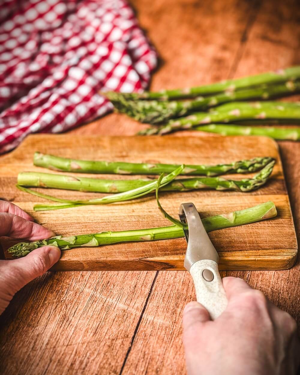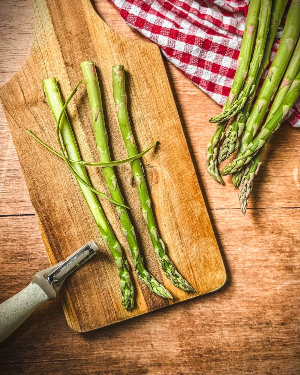 Für den perfekten Spargelgenuss reicht es meist, die unteren Enden zu kürzen und nur bei Bedarf zu schälen – eine enorme Erleichterung in der Küche und ein weiterer Vorteil des grünen Spargels. Alle Infos übrigens im Artikel Spargel schälen.