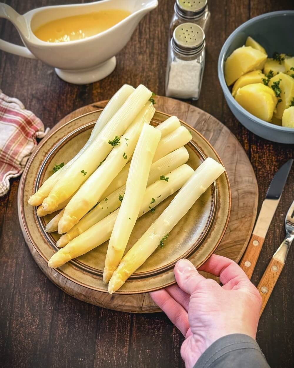 Übrigens: Ein guter Sparschäler oder Spargelschäler hilft beim ersten Schritt. Der zarte Spargelkopf sollte dabei möglichst unversehrt bleiben – er ist das Highlight auf dem Teller, direkt neben den Kartoffeln oder pur als Star.