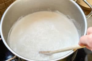 - Währenddessen gelegentlich umrühren, damit nichts am Boden ansetzt.
