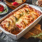 Wichtig ist dabei, die Füllung gut zu würzen, damit der typische Moussaka-Charakter erhalten bleibt. Aufbau, Schichtung und Backzeit bleiben gleich – nur die Füllung in der Mitte verändert sich.