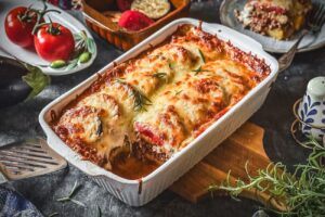 Typische Gewürze für Moussaka sind Oregano, Rosmarin und Zimt. Sie geben der Hackfleischsauce eine mediterrane, leicht würzige Note. Salz und Pfeffer sorgen für die Grundwürze, ohne die anderen Aromen zu überdecken.