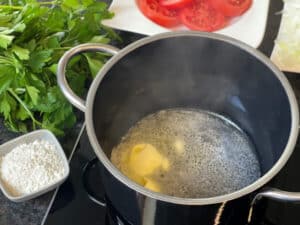 - Für die Béchamelsauce Butter in einem Topf bei mittlerer Hitze schmelzen lassen. Darauf achten, dass sie nicht bräunt.
