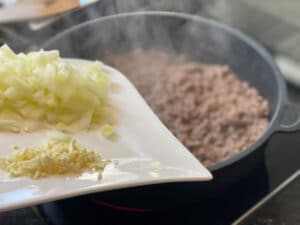 - Zwiebel und Knoblauch: geben der Hackfleischsauce Tiefe und runden den Grundgeschmack ab.