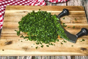 - Bärlauch waschen, trocken schütteln und fein schneiden.