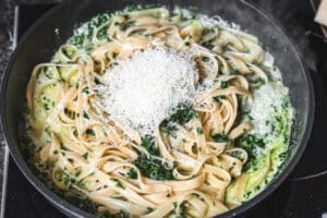 - Parmesan bringt eine würzige, leicht salzige Note ins Spiel. Gleichzeitig verändert er die Konsistenz und macht die Soße etwas dichter.