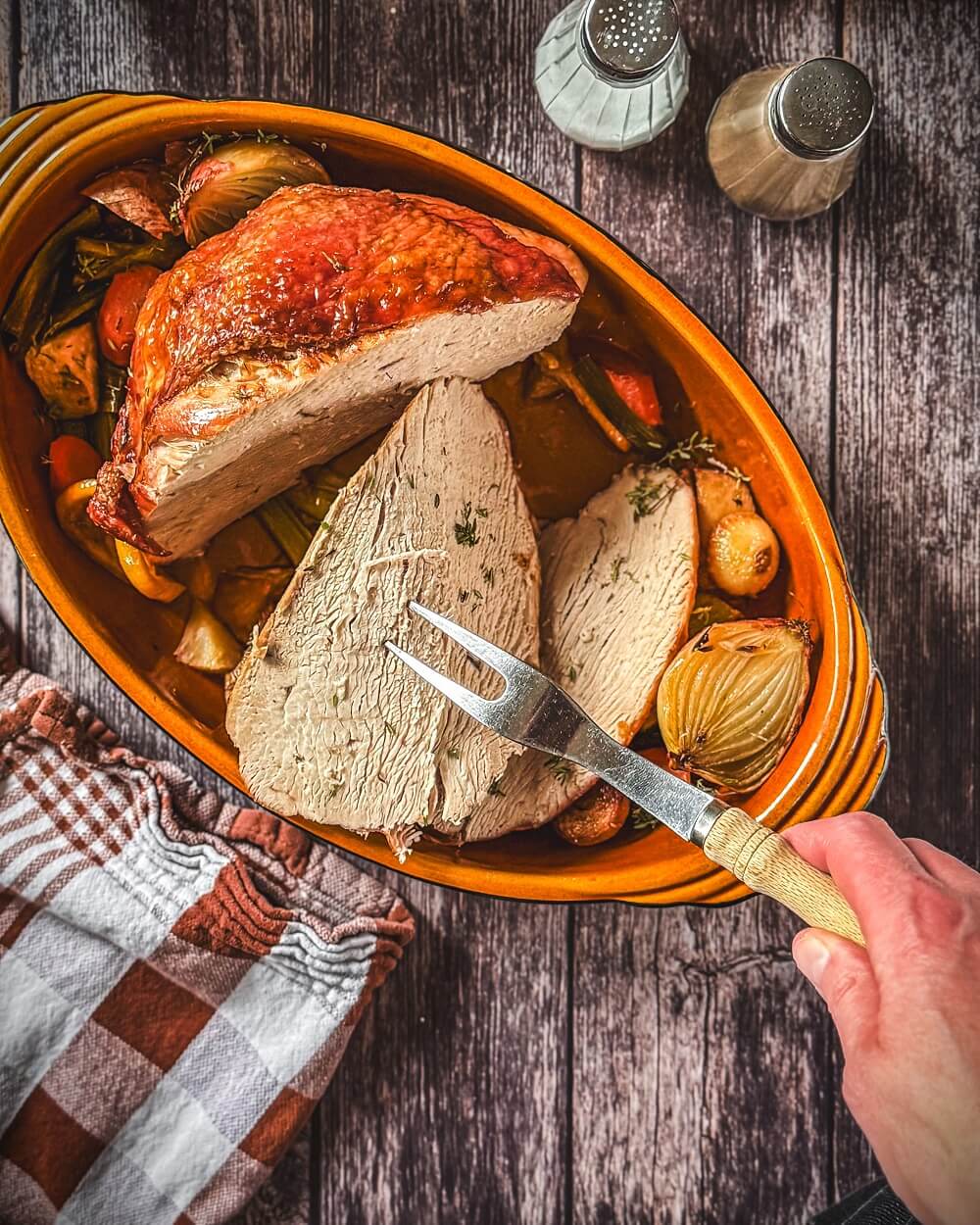 Bei uns gab es bisher nur Schweine- und Rinderbraten aber das werde ich mal ausprobieren ? die Pute sieht super saftig aus ?