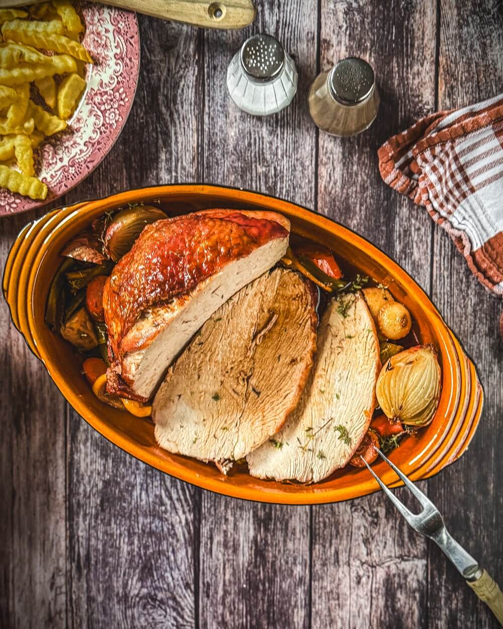 - Ruhephase: Lass den Putenbraten nach dem Garen etwa 10 Minuten ruhen, bevor du ihn anschneidest. Dadurch können sich die Säfte im Fleisch verteilen, und es wird nicht trocken.