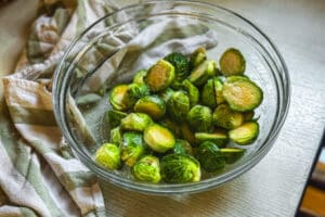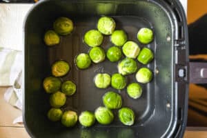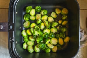 180 Grad bringen ein gutes Verhältnis zwischen Röstung und weicher Basis. Rosenkohl aus der Heißluftfritteuse bleibt dabei gleichmäßig gegart.