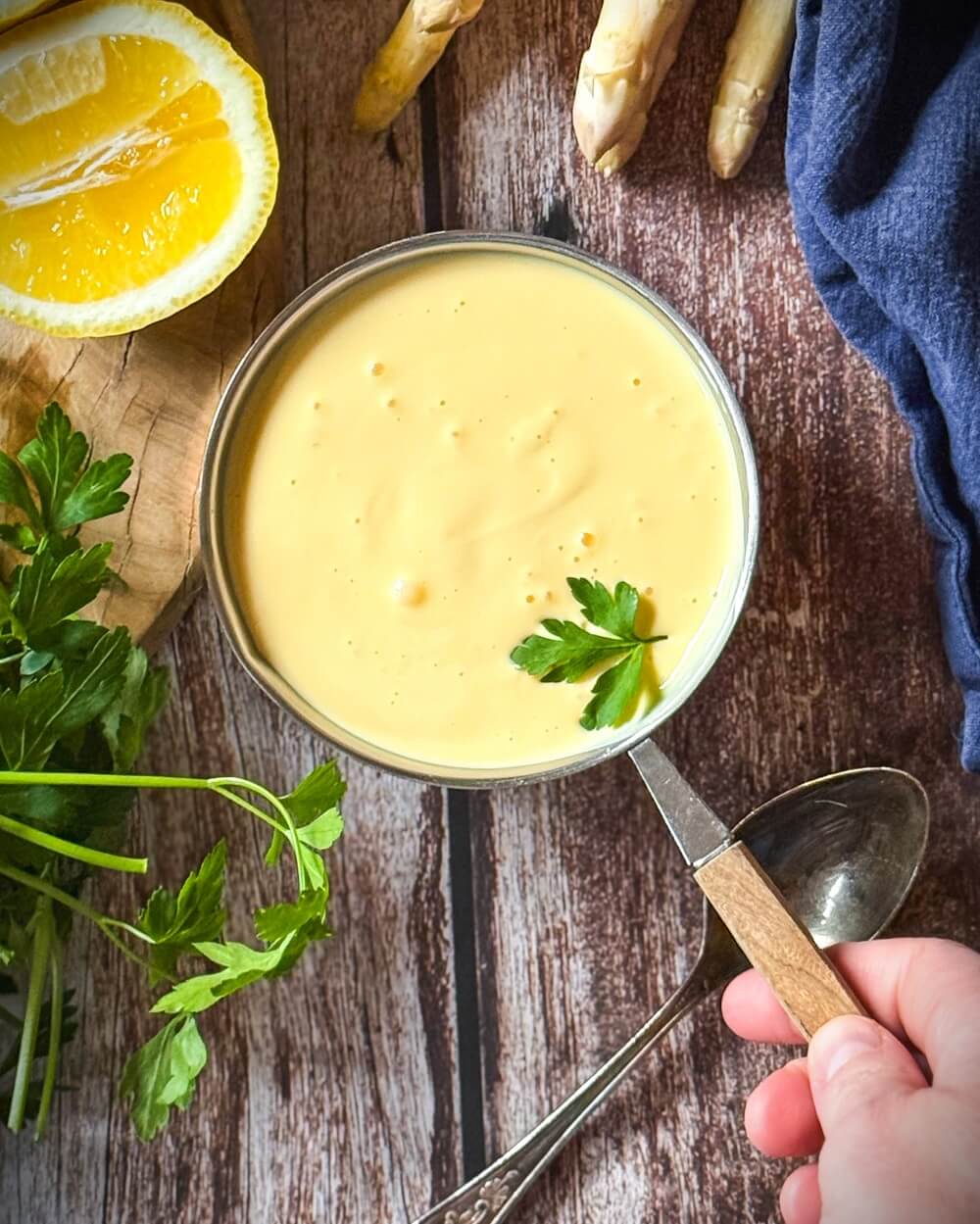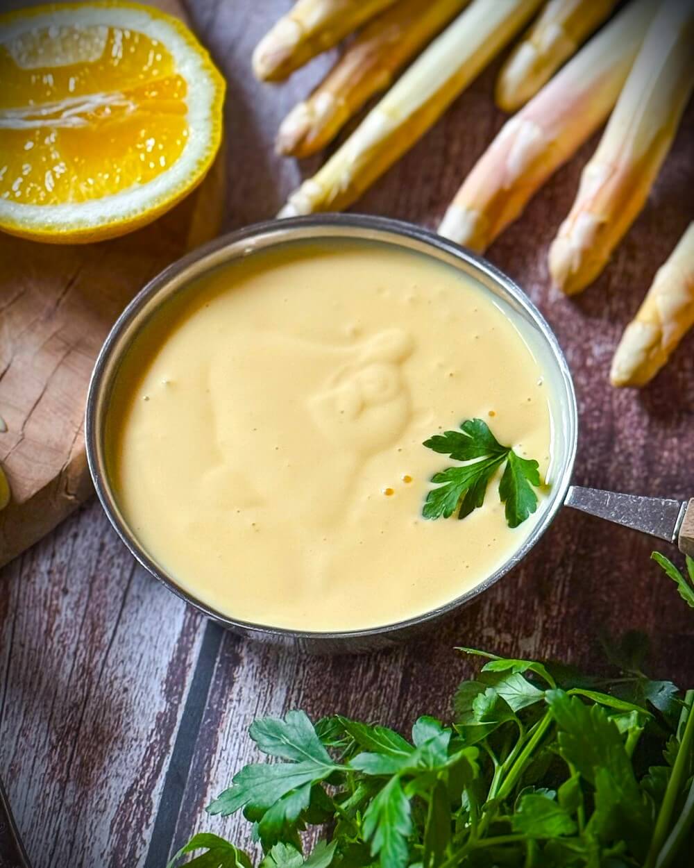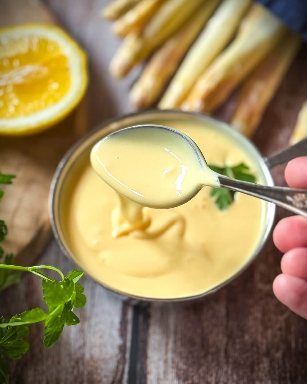 Entwickelt wurde die Sauce jedoch in Frankreich, vermutlich in der Region Normandie, wo Butter und Sahne schon immer eine große Rolle spielten. Von dort aus hat sie ihren festen Platz in der internationalen Küche gefunden – heute vor allem bekannt als unverzichtbare Begleiterin von Spargel, Fisch und feinem Gemüse. Eines der wichtigsten Soßen Rezepte – neben der Béchamelsoße oder auch der Tomatensoße.