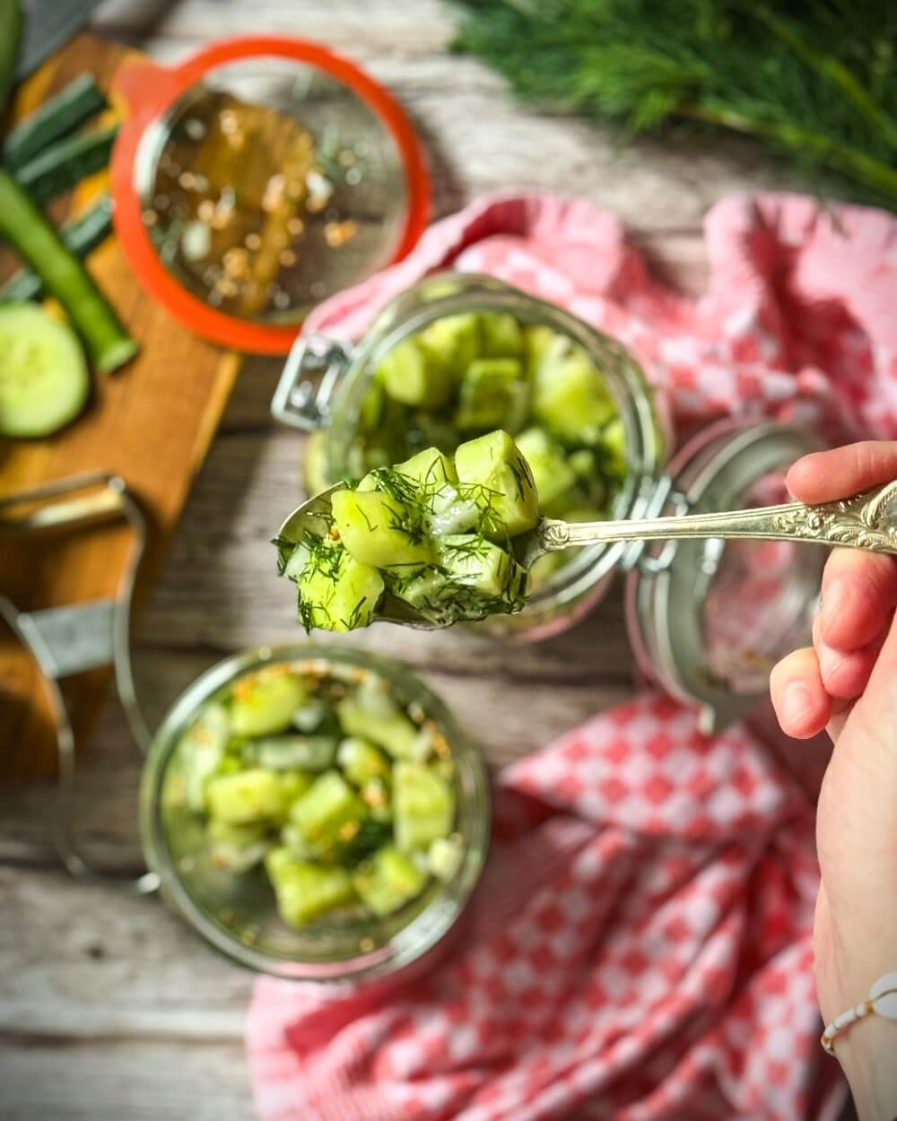 Ebenso ungünstig ist es, Zucker, Salz und Gewürze direkt oben auf die Gurkenscheiben im Glas zu geben – das führt oft dazu, dass sich die Aromen ungleichmäßig verteilen. Besser ist es, wie oben beschrieben, die Marinade vorher anzurühren und dann als homogene Flüssigkeit über das Gemüse zu geben.