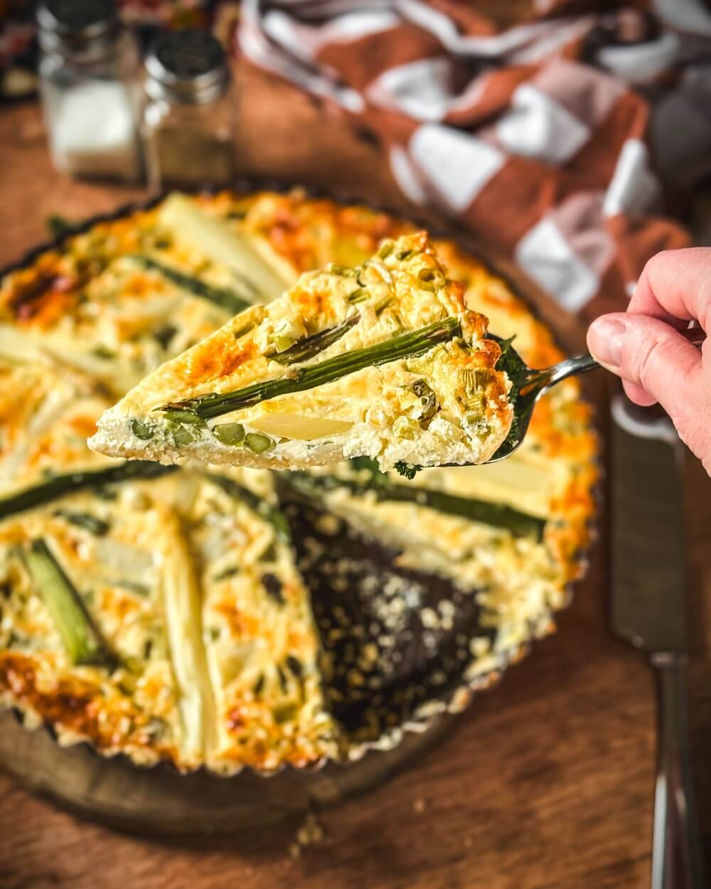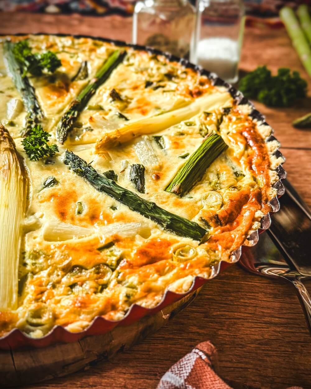 - Grüner Spargel und weißer Spargel: Beide Spargelsorten sorgen für den charakteristischen Geschmack der Spargelquiche und bringen unterschiedliche Aromen auf den Teller.