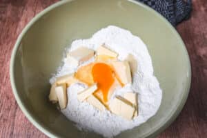 - Mehl, Butter, Ei und Salz in eine Schüssel geben.