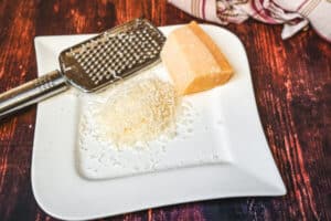 - Den Parmesan frisch reiben und beiseitestellen.