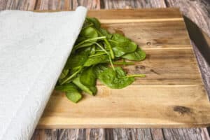 • Und anschließend zwischen zwei Küchentüchern trocken tupfen. Ziel ist es, möglichst wenig Wasser ins Spinat Pesto zu bringen. Alternativ kann eine Salatschleuder verwendet werden.